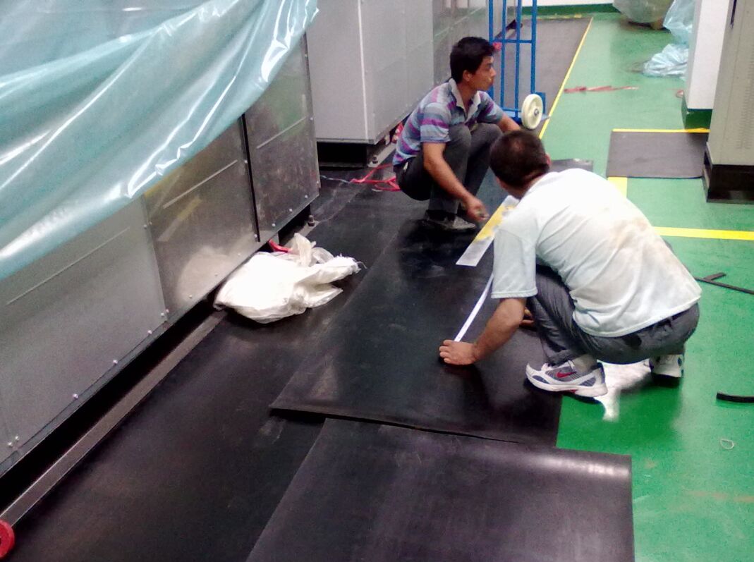 絕緣膠墊本身有一定重量,有較好的抓地性,可以直接平鋪在地面上,一般無(wú)需膠水固定;接縫處可用壁紙刀切成斜度45°的切口,對(duì)齊拼接后可保證無(wú)明顯縫隙,不影響美觀及絕緣膠墊正常使用,如對(duì)外觀要求嚴(yán)格可用焊連接。低壓配電室配電柜前后鋪設(shè)即可。