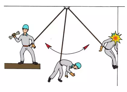 如果你系掛安全帶時(shí),扣點(diǎn)不是自己位置正上方的話,發(fā)生墜落時(shí)將在空中出現(xiàn)擺動(dòng)現(xiàn)象,并有可能撞到其它物體而造成傷害。所以扣掛時(shí)一定要選擇好扣點(diǎn),以避免發(fā)生這種“鐘擺效應(yīng)”。