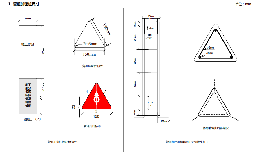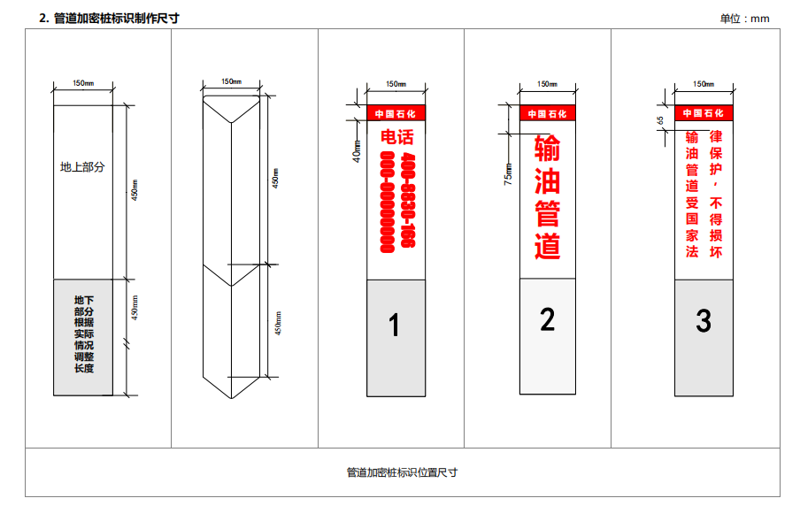 2. 管道加密樁標(biāo)識制作尺寸